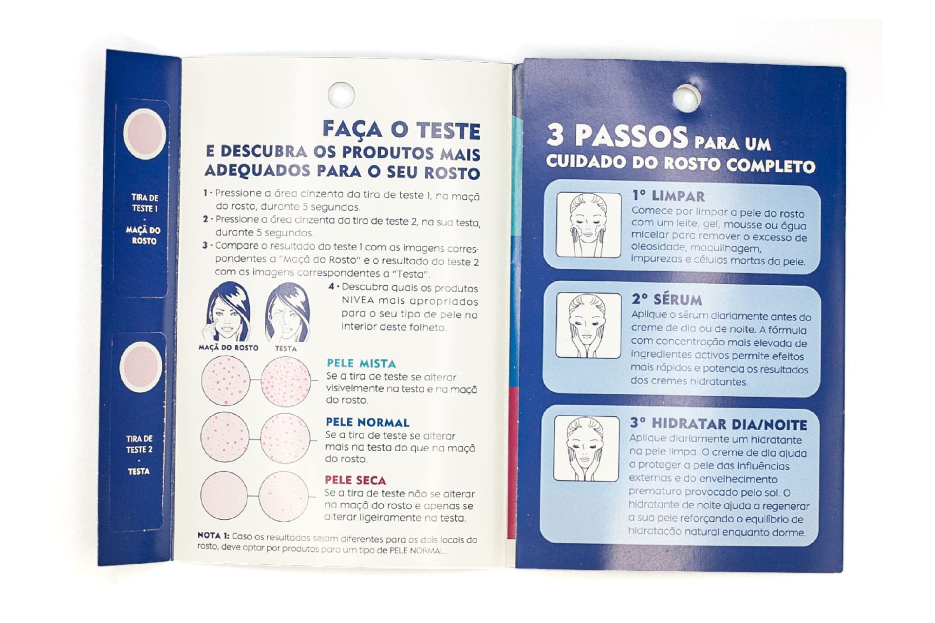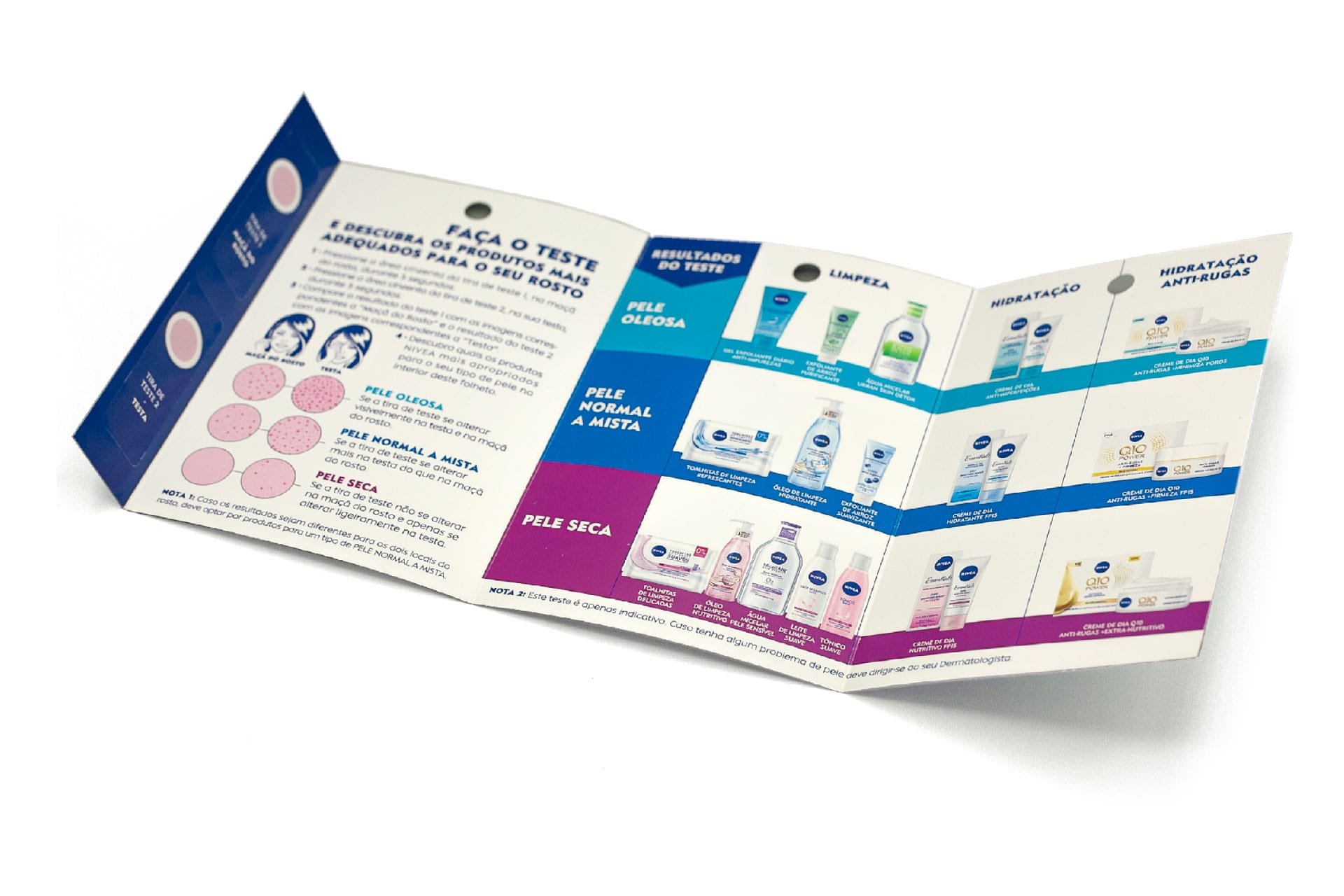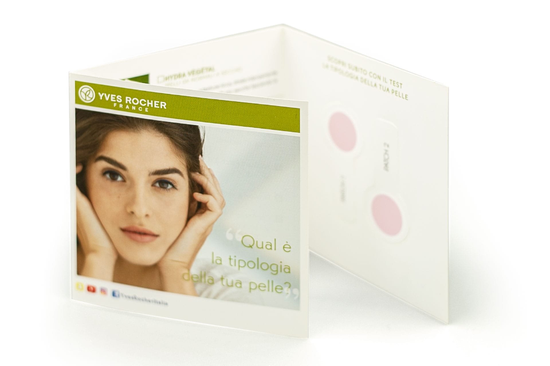 Cosmetic test that allows you to find out your skin type (dry-normal-oily) easily and in a few seconds, allowing you to recommend the most suitable cosmetic treatment. Non-invasive and single-use. Possibility of printing on the triptych.