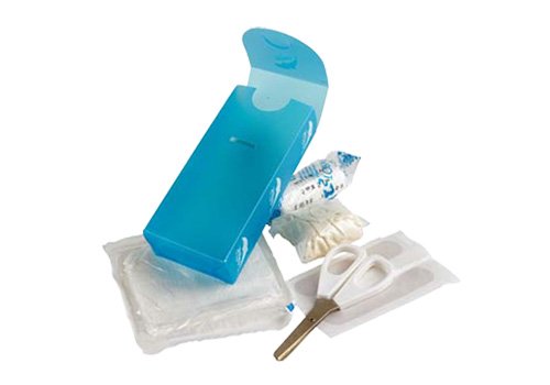 Botiquín de bolsillo. Disponible en color translúcido blanco o azul.