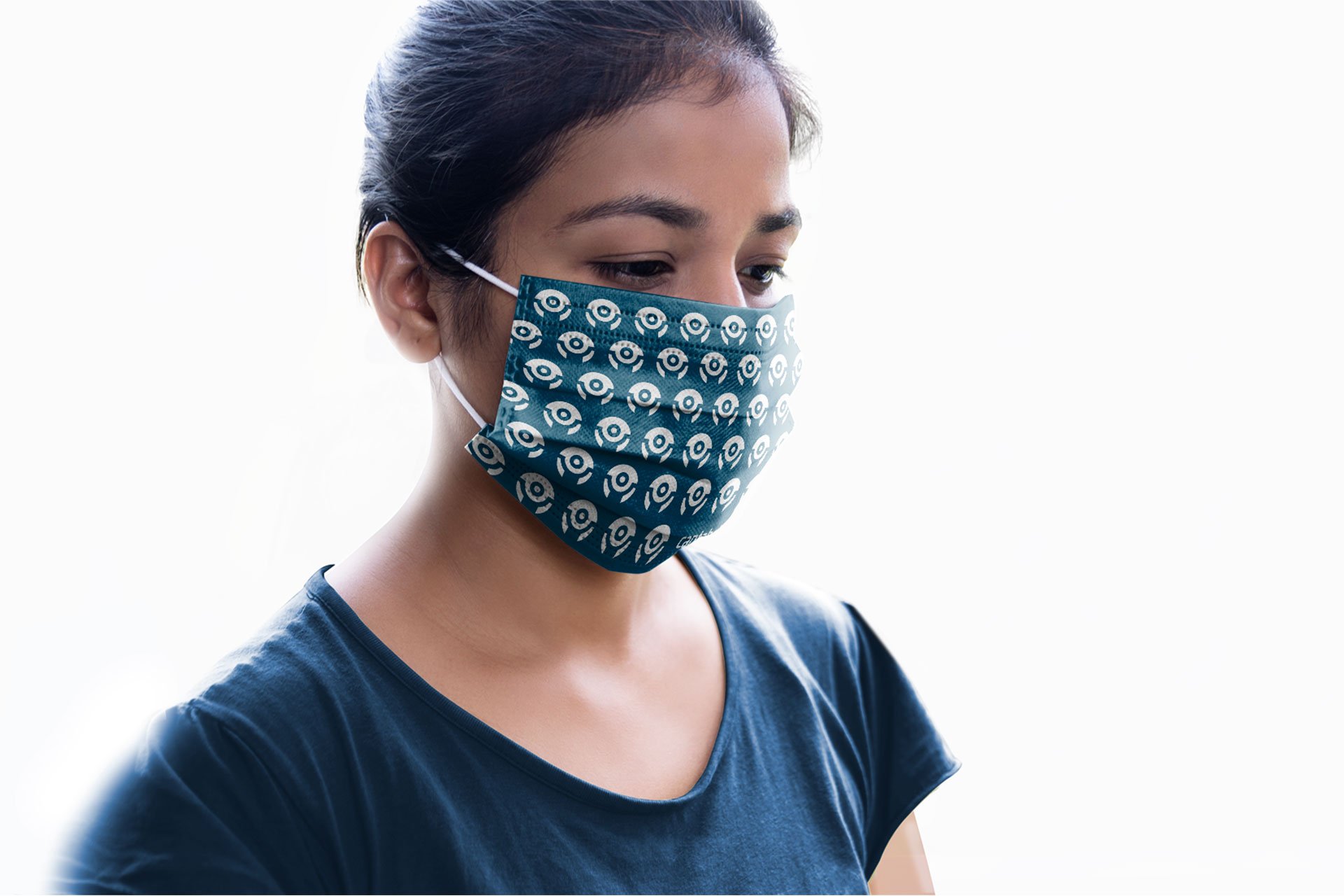 Mascarilla higiénica reutilizable de tela, 3 capas (poliéster exterior y 100% algodón en su interior), dos gomas redondas o planas, de color blanco o negro.