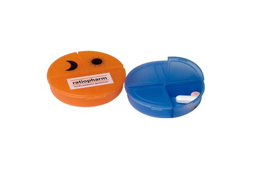 Pastillero de PVC redondo, con 3 compartimentos.