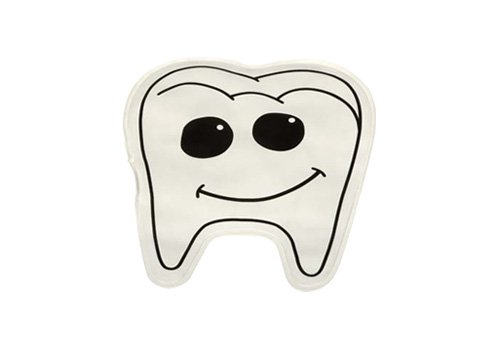 Pack térmico frío/calor reutilizable en forma de muela, de color blanco con dibujo standard en negro. Entregado en bolsa individual.