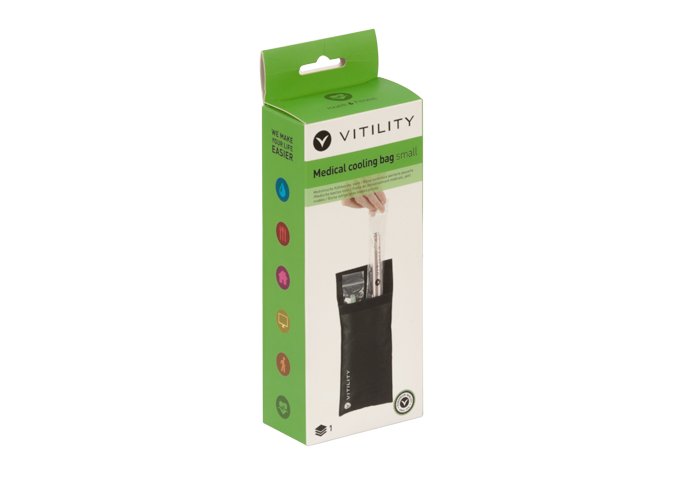 Modo de uso: quitar la bolsa de enfriamiento y colocarla en agua fría durante 45-60 minutos. Luego secar la bolsa con una toalla. Seguidamente colocar los bolígrafos de insulina u otros medicamentos en las bolsas de plástico y después en la bolsa de enfriamiento. Y para terminar, colocar la bolsa de enfriamiento en la bolsa protectora.