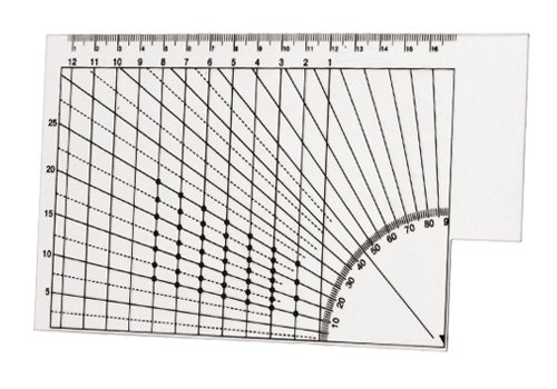 Regla de podología de PVC transparente y flexible con escala impresa en negro para la medición de diferentes ángulos del pie.