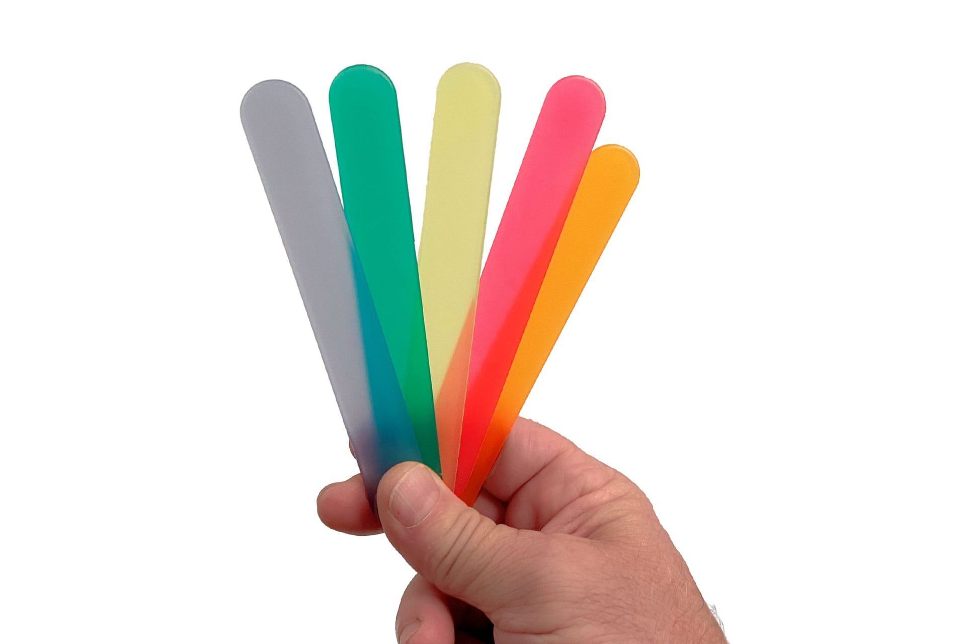 Depresor lingual infantil, de plástico (130 mm), con cantos redondeados para evitar el roce, flexible y más resistente que otros existentes en el mercado.