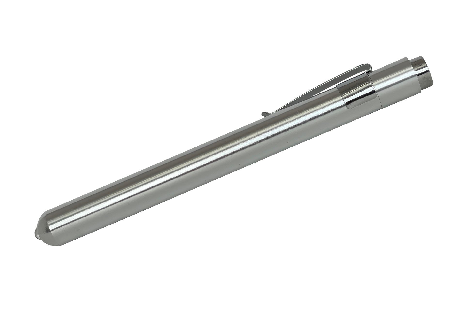 Linterna diagnóstico de aluminio anodizado acabado brillante, con clip para sujeción. Disponible en color negro y plata. Se incluyen 2 pilas R-03 (AAA).