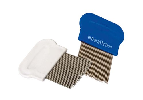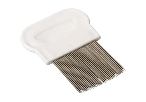 Comb to remove nits and lice. PVC handle and metal teeth.