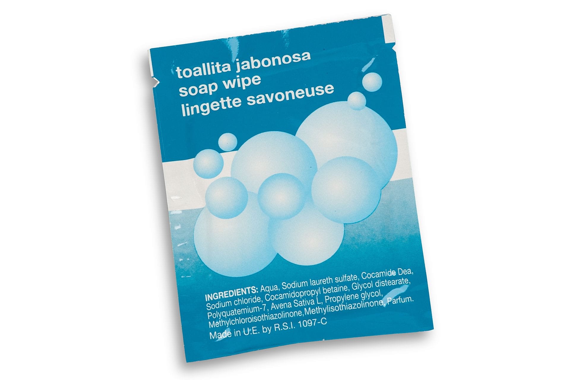 Sachet of 60×80 with handsoap wipe.