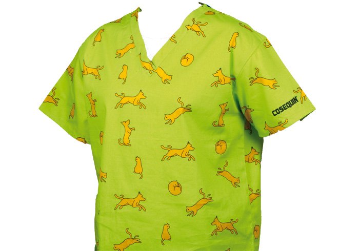 Unisex coat, 100% cotton. Coat with short sleeves with 1 pocket and V-neck collar. Sizes S, M, L, XL.