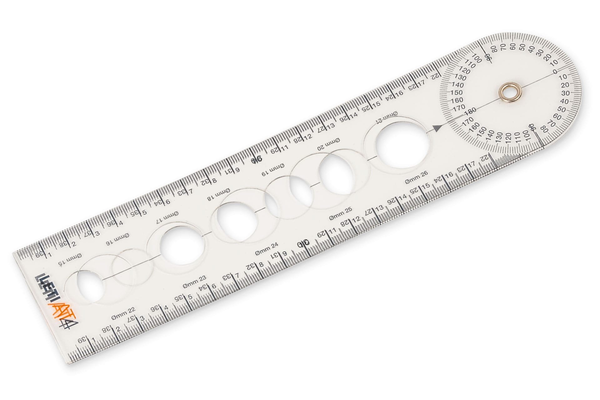 Flexible ruler for dermatological use. Includes scale and die-cut circles to evaluate spots, frekles or melanomas. Available in transparent colour.