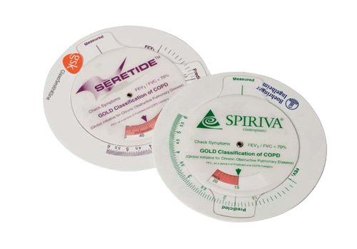 Flexible PVC calculator disc of the Peak Expiratory Flow (PEF), a lung function measurement for asthma. Scale printed in 1 color included.