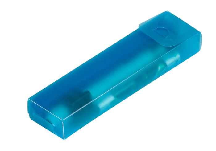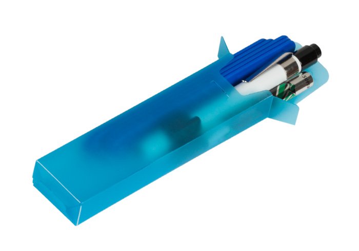 Diagnostic set with depressor holder. Pocket case in translucent PP 0.5mm. It contains a torch with pressure holder and 5 D-2 depressors (13 cm) and 2 AAA batteries.