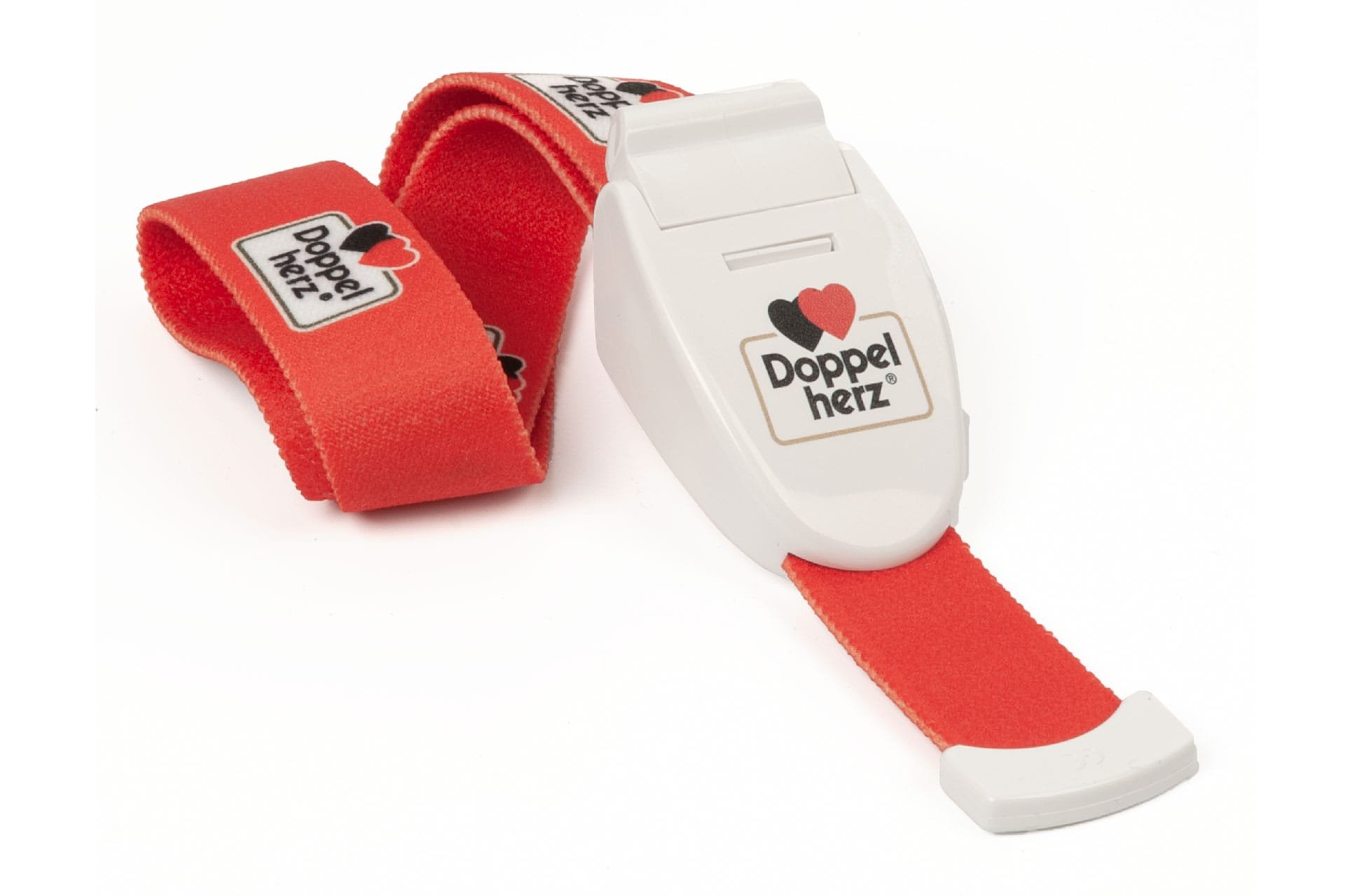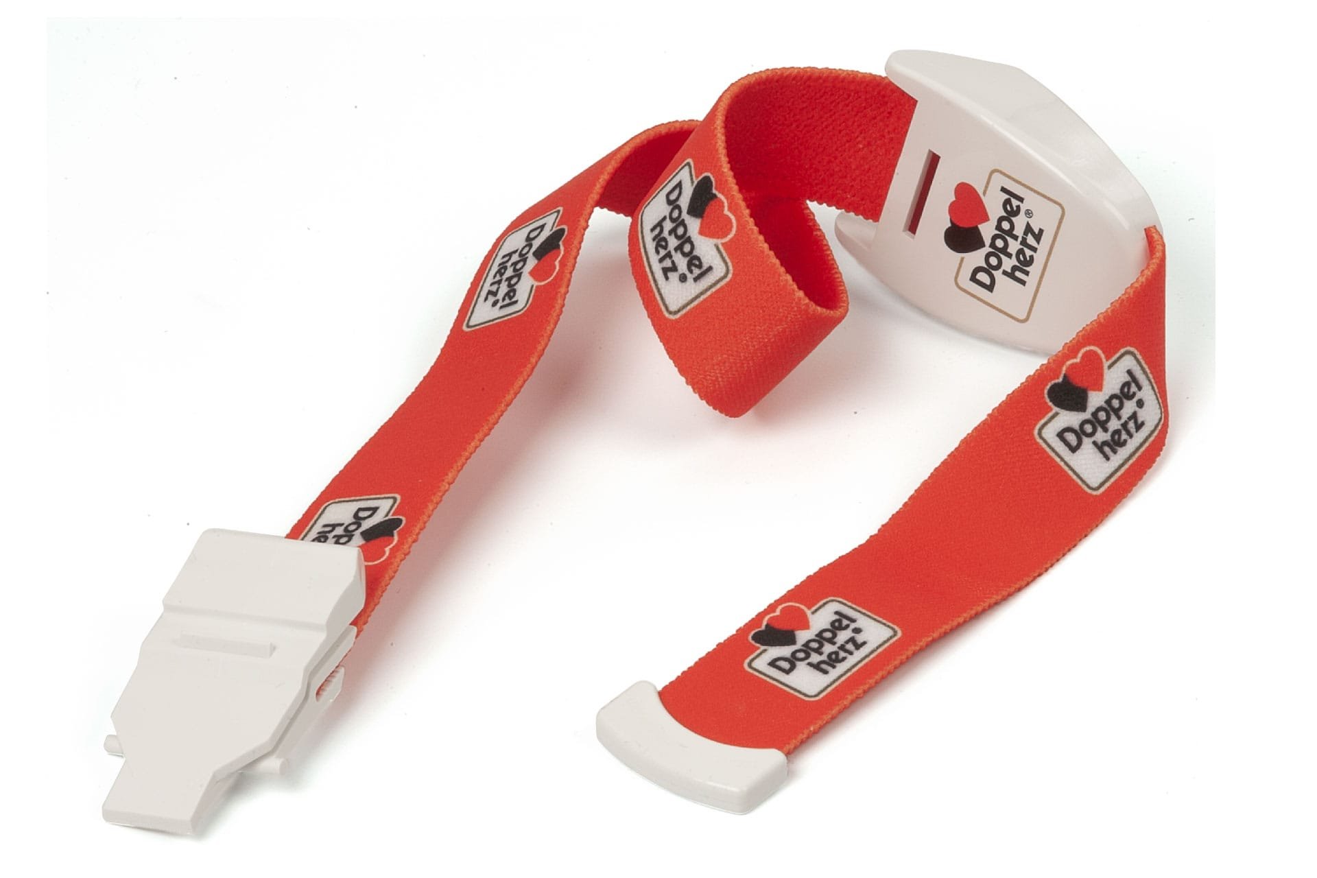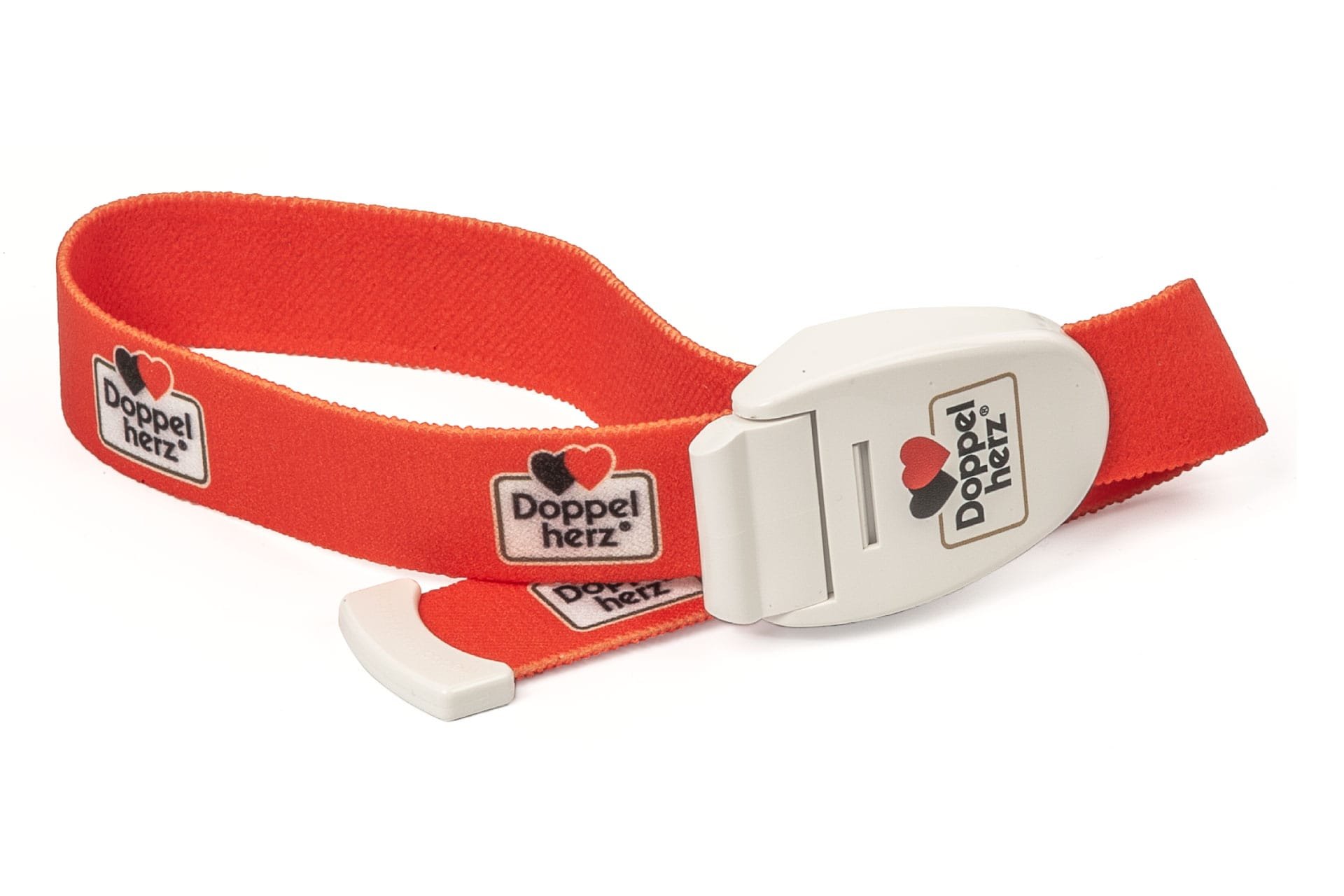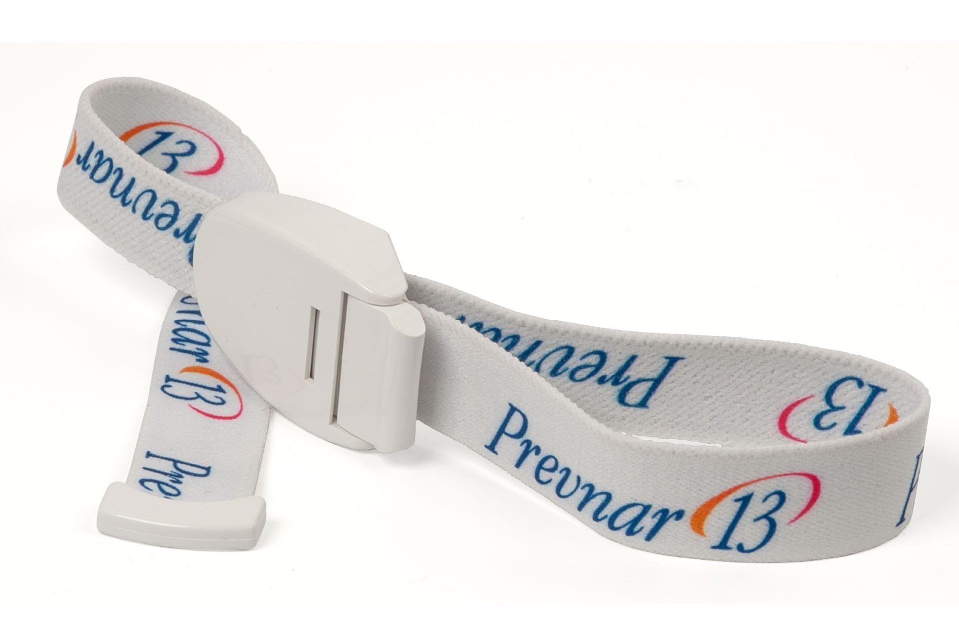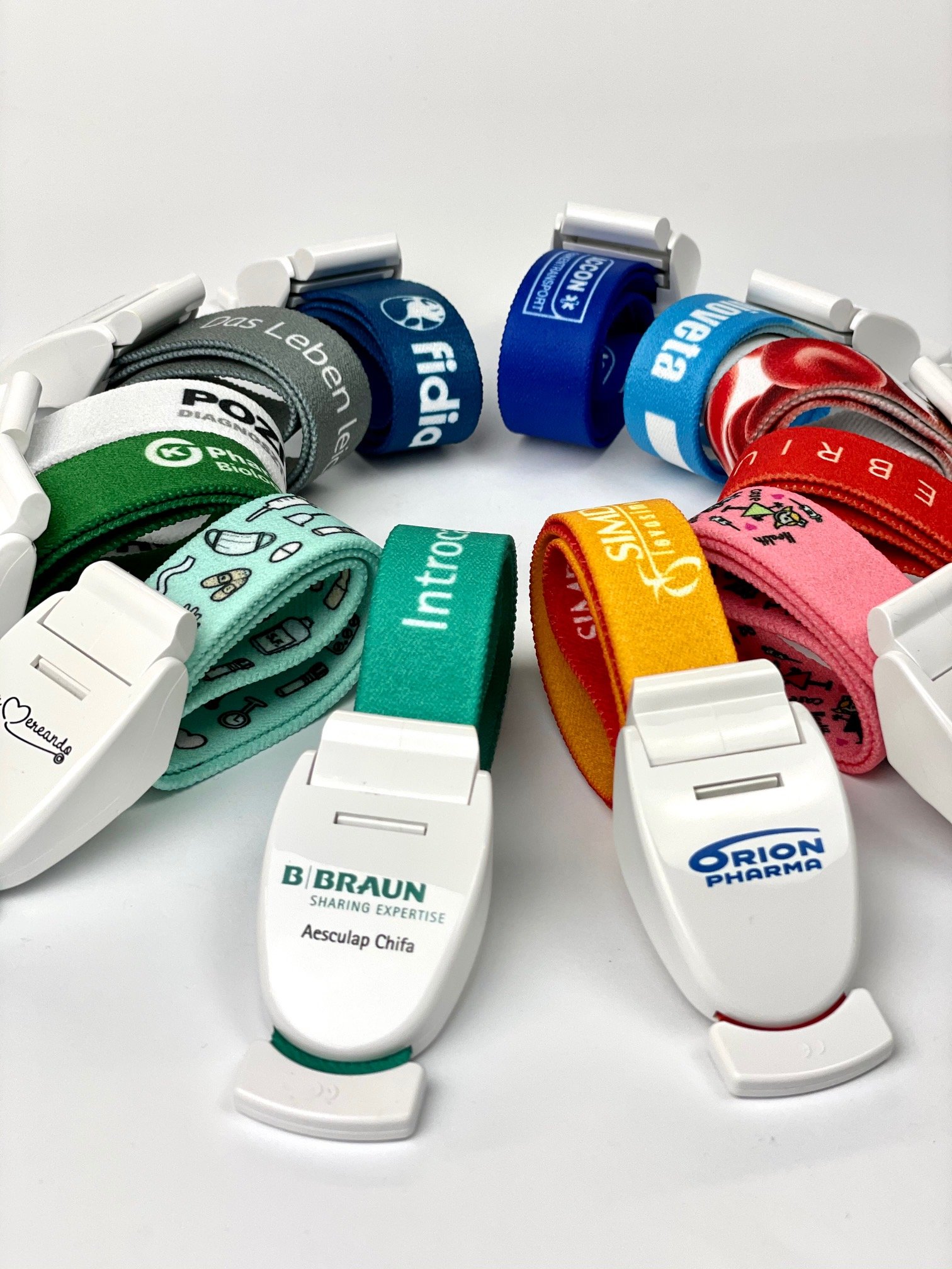 Compressor tourniquet. Elastic strap in Jacquard (polyester) and plastic buckle (ABS). Latex free.