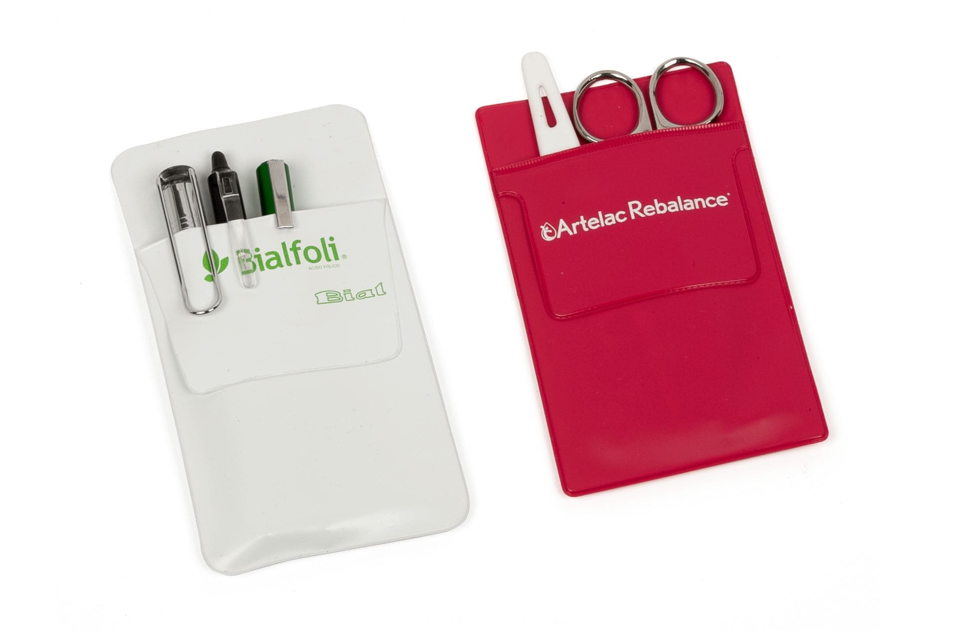 Pocket protector. Flexible PVC bag. Ideal for storing pens or other utensils in your pocket and protecting ink leaks. Possibility of customize by silkscreen print on the flap or in the whole protector.