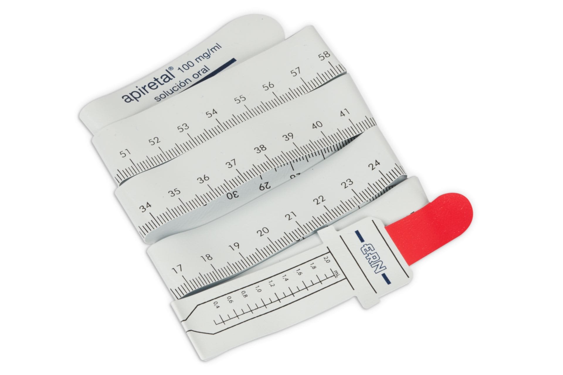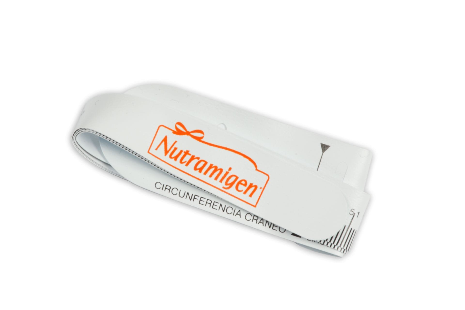 Flexible tape measure for measuring the head circumference of infants and adults. Flexible white tape in PVC 300 microns with graduation printed in black. Delivered in an individual polybag. Possibility to customize the shape.