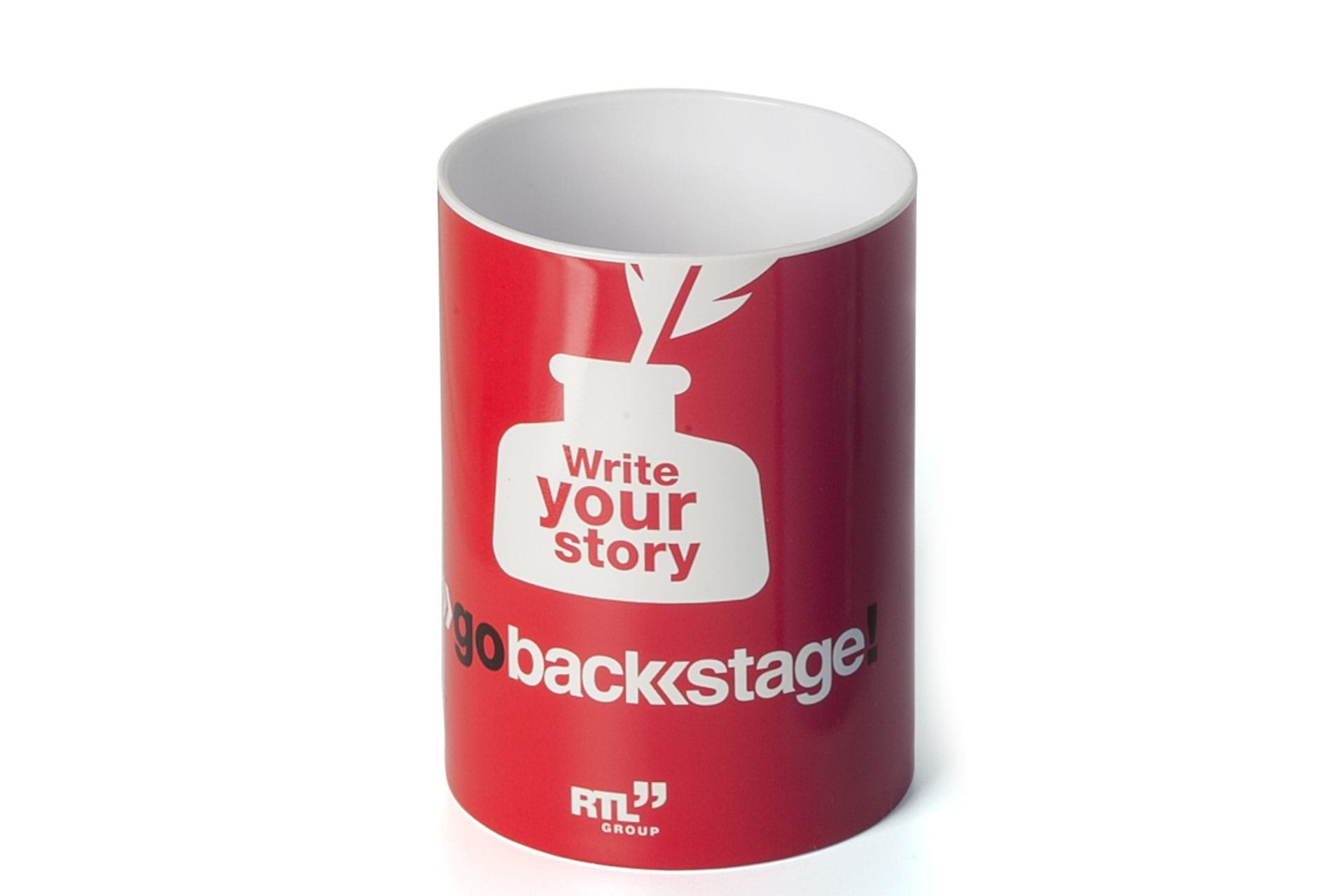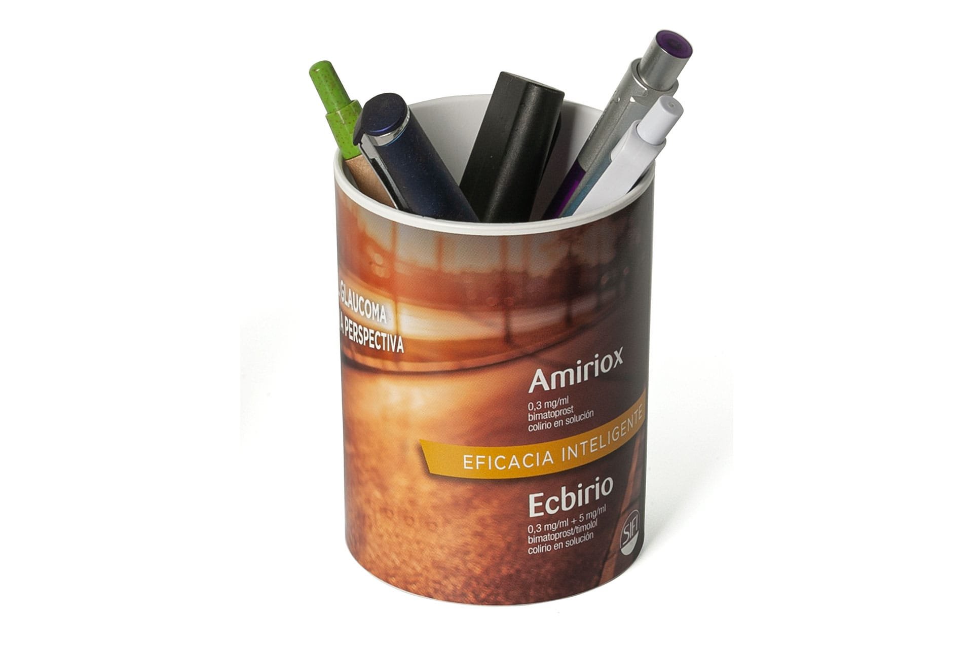 Pen pot holder made in plastic. Possibility to make IML print all over the surface (360º).