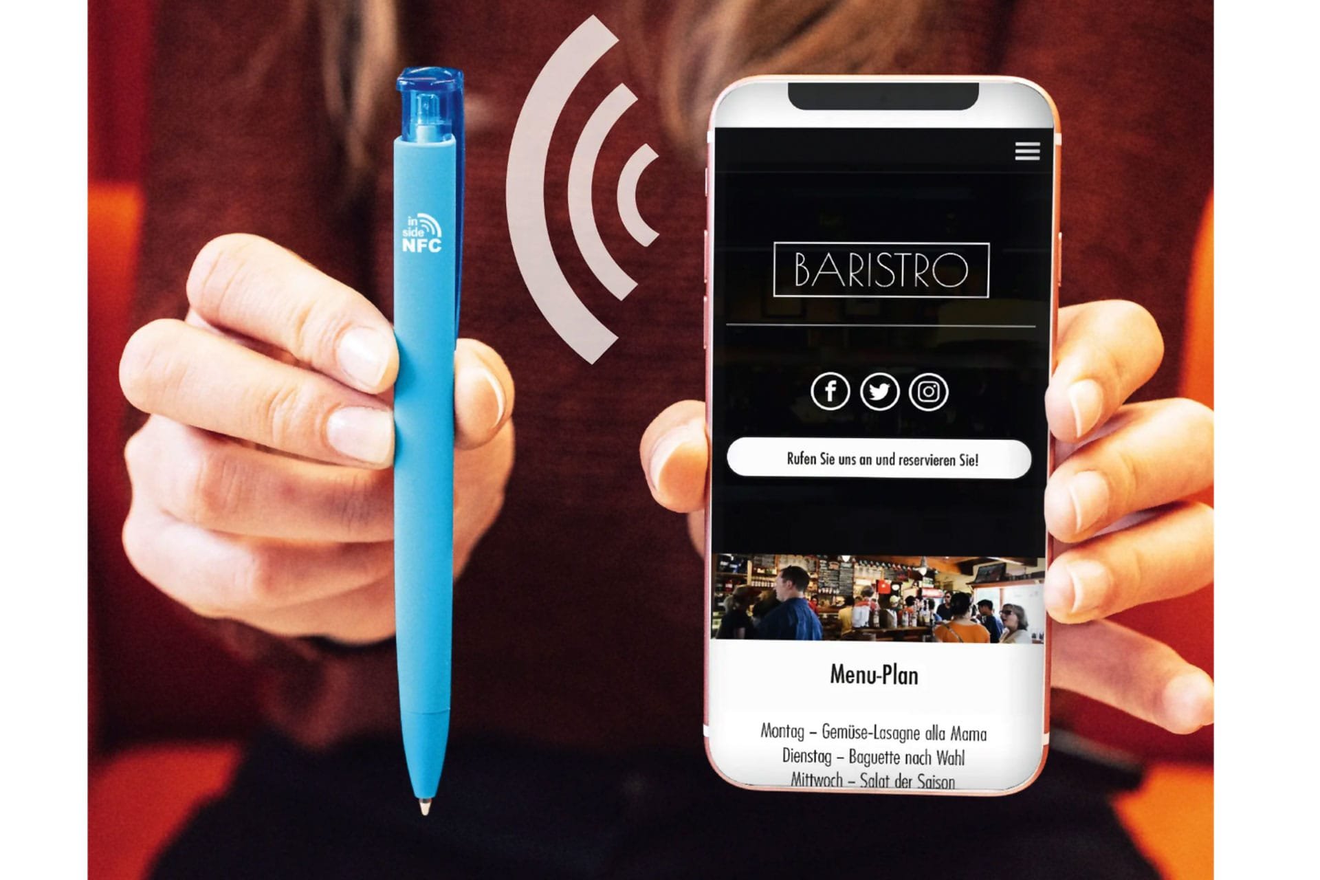 “Near field communication”. International transmission standard for wireless data exchange over short distances to the tablet or smartphone.