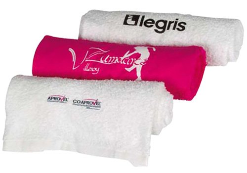 Toalla grande 100 % algodón de 380 g rectangular, con franja para hacer una descripción y grabación en serigrafía o bordado. Disponible en colores estándar.