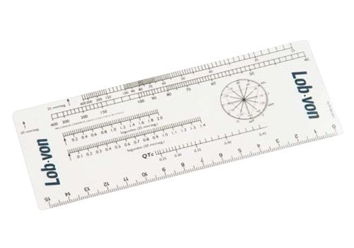 Regla flexible, en PVC, de uso cardiológico, para medir la frecuencia cardíaca en un electrocardiograma.
