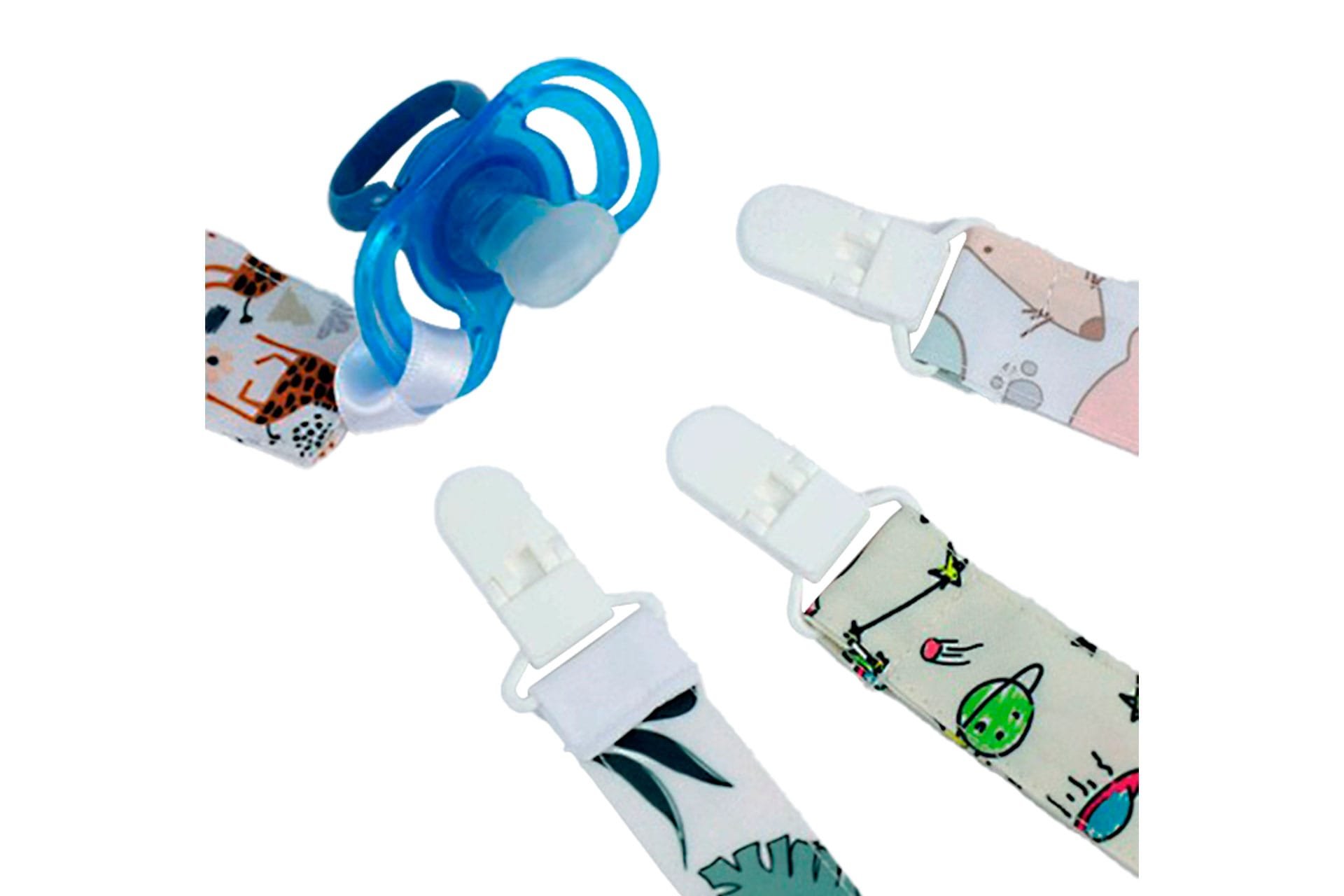 Cinta de tela sujeta-chupete con pinza sujeción.