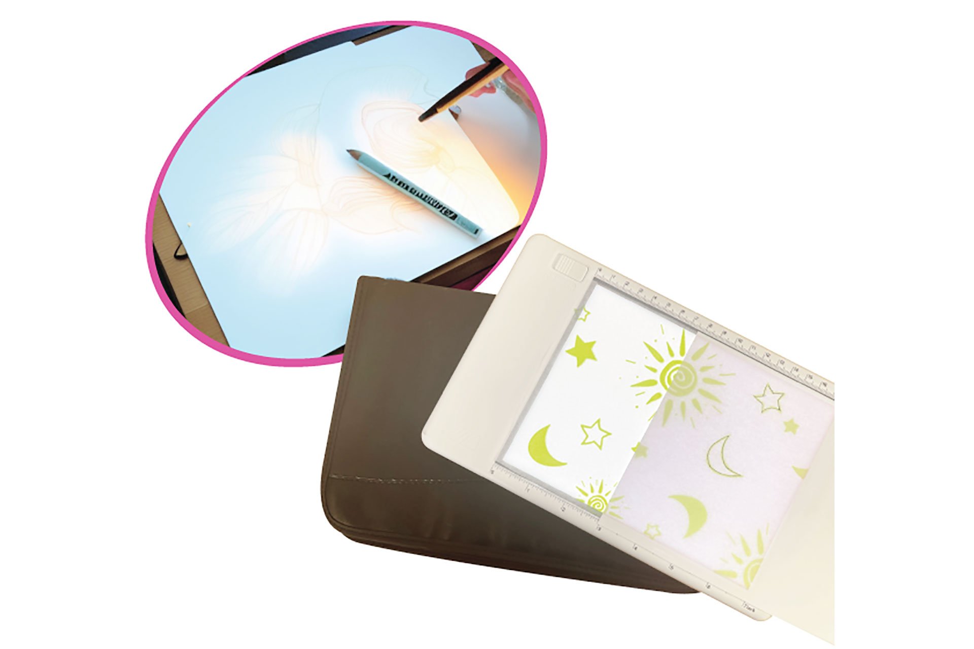 Drawing tablet with light. It can work with electricity or with 2 batteries R06, not included.