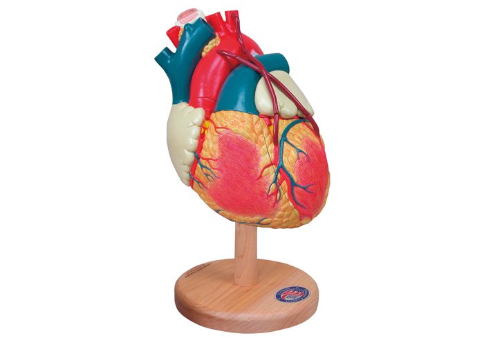 3D anatomical model in the shape of a heart, held by a PVC base.