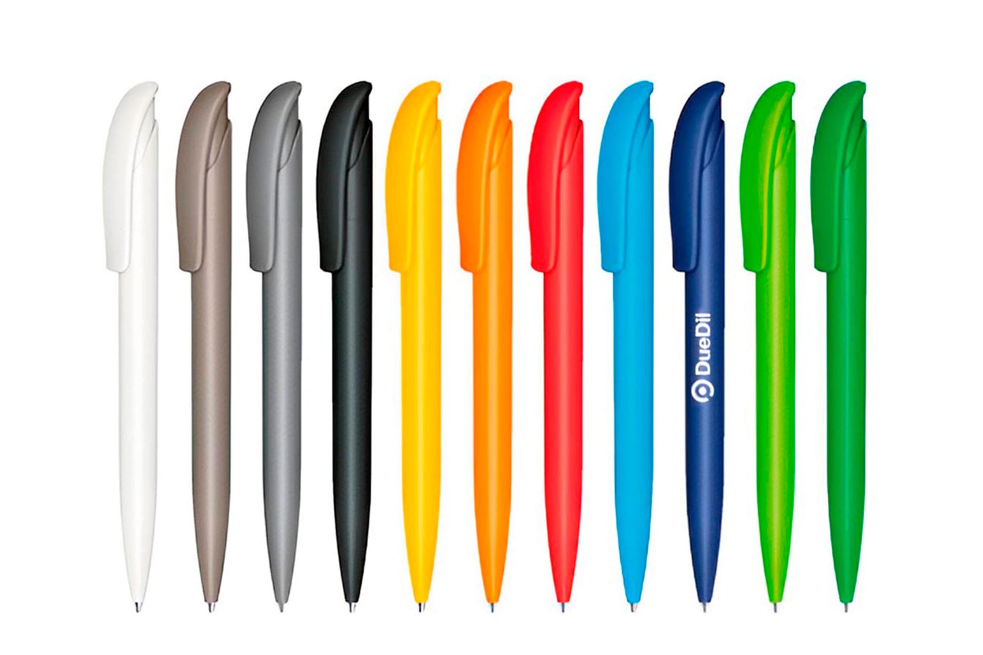 Opaque matte ballpoint pen with push-button. Recycled material. Available in various colors.