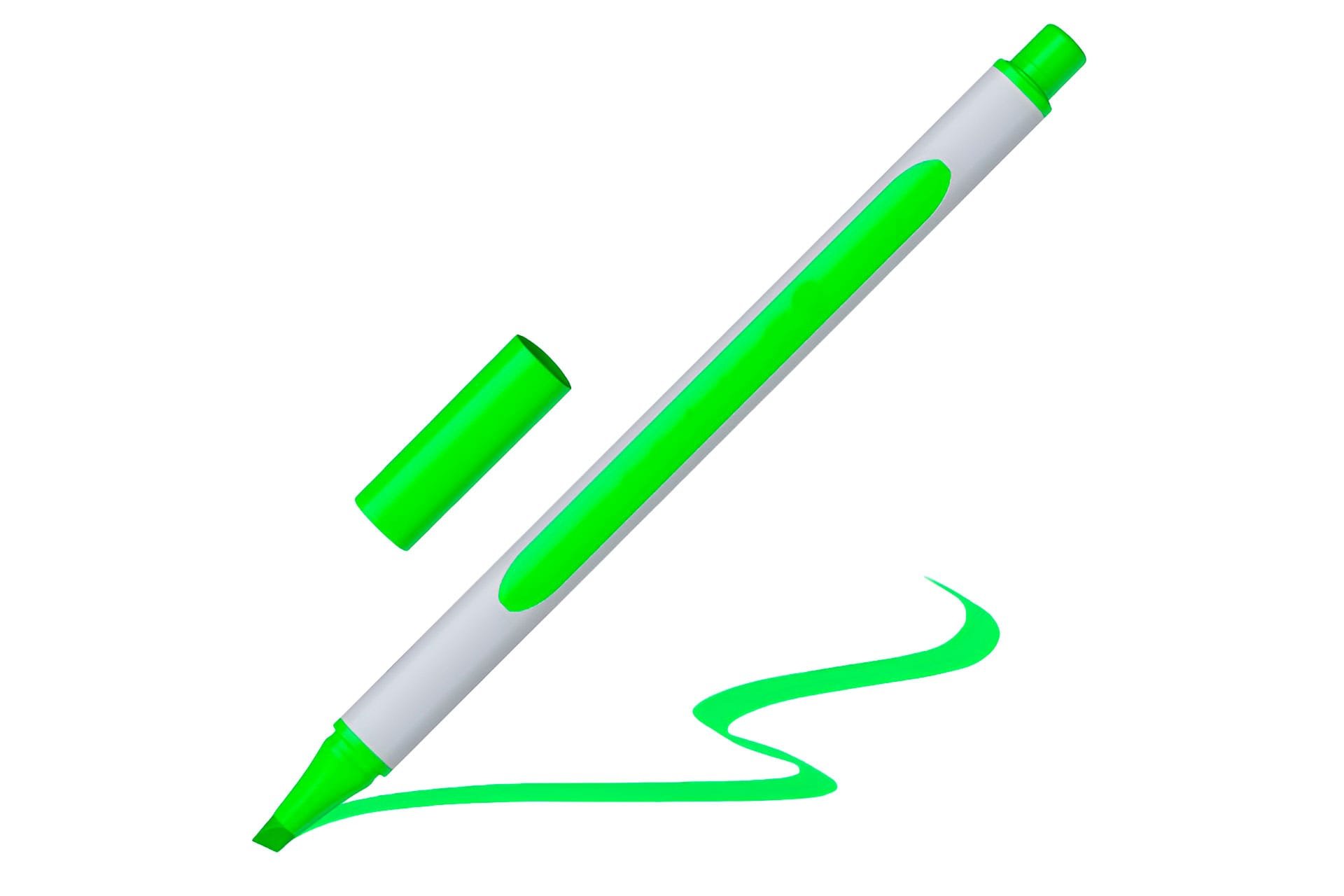 Triangular body highlighter made from over 80% bio-based plastic. Available colors: yellow, orange, pink, and green.